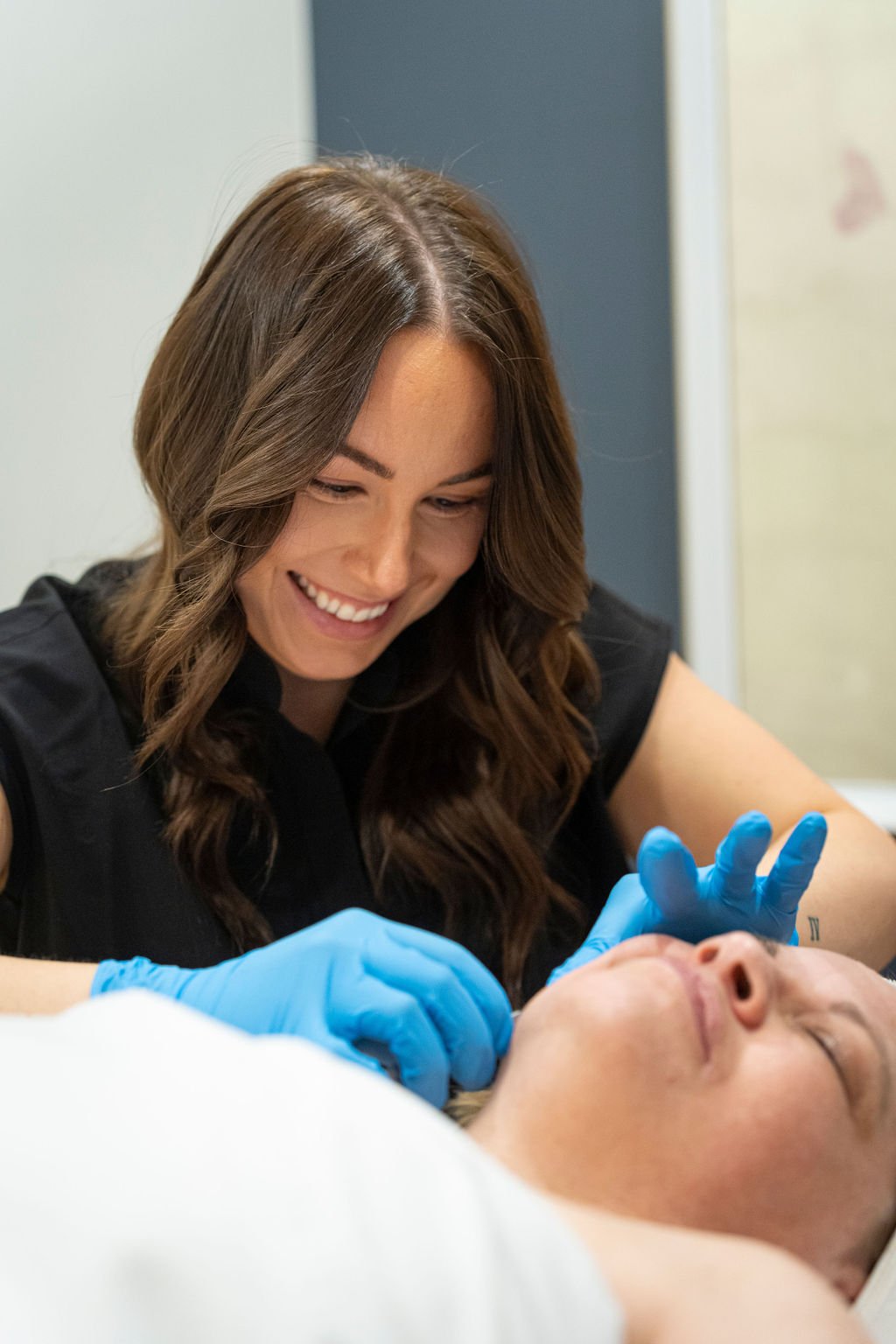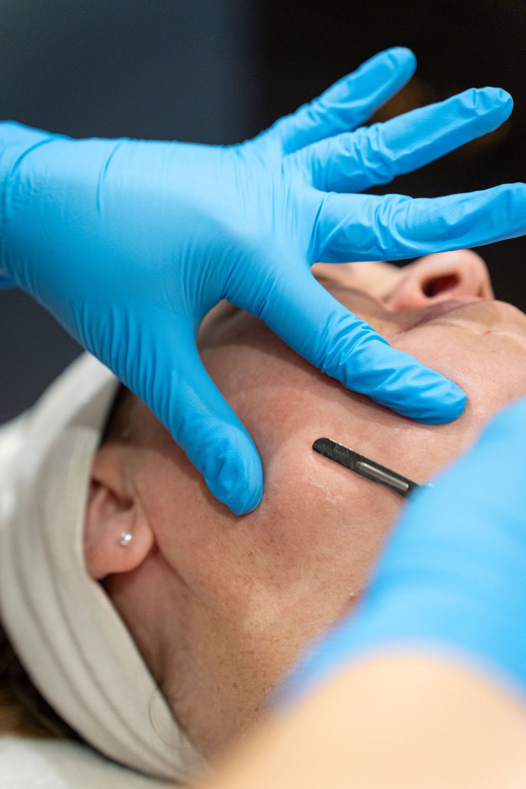 Dermaplaning uses a blade to manually exfoliate the top layer of skin to remove fine vellus hair (peach fuzz), and dead skin cells. This treatment encourages the growth of fresh cells and improves the texture, and brightness of the skin for a smooth, healthy complexion.