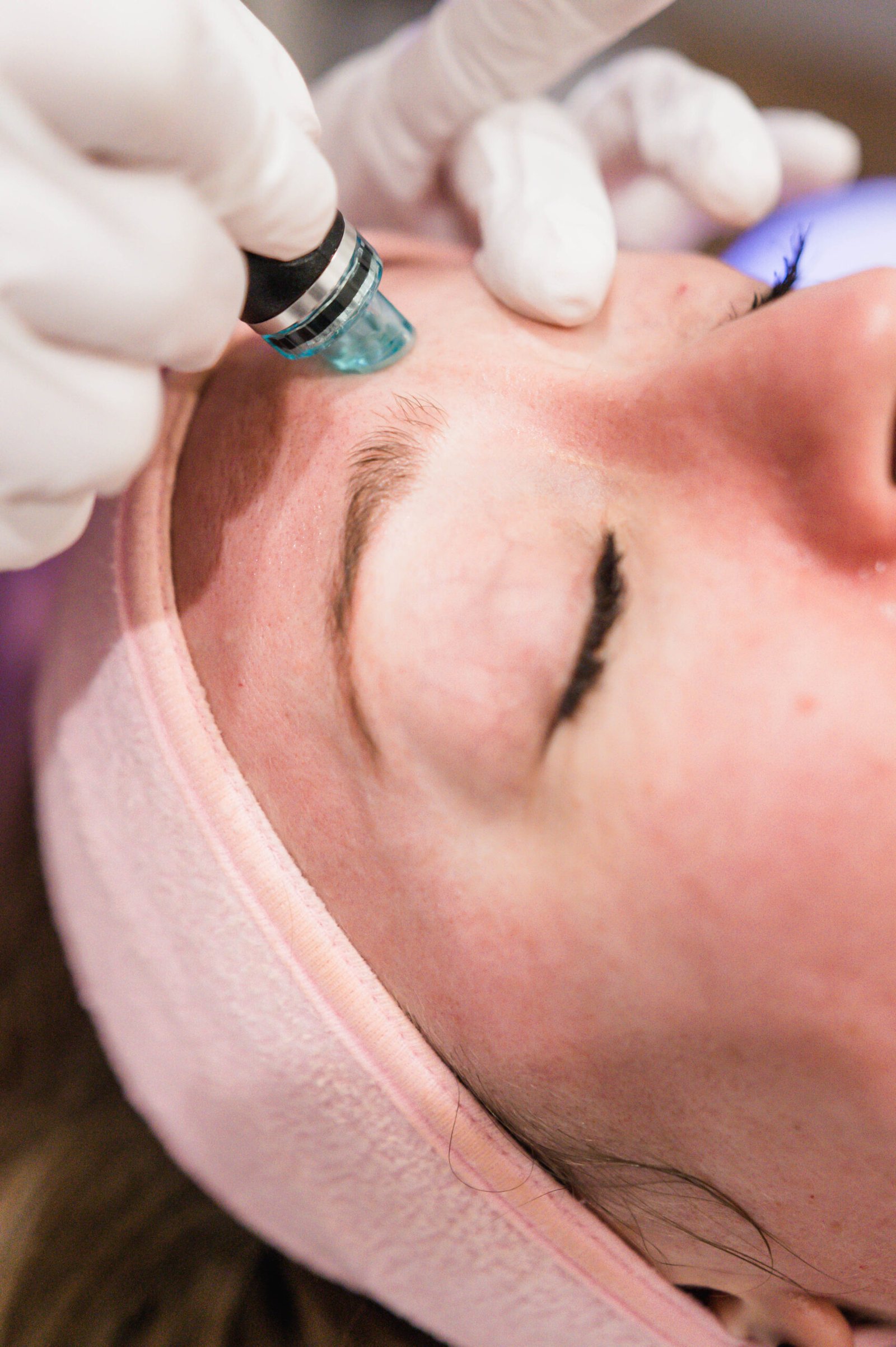 Hydradermabrasion uses the Hydrafacial™ machine and a wet-tip exfoliating tool to deeply cleanse and exfoliate, removing impurities such as dead skin and sebum. A solution containing nourishing serums is infused into the skin providing a boost of antioxidants and hydration.